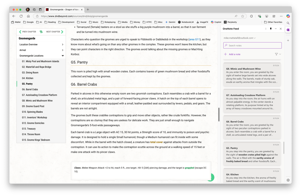 Coupling this feature with the OneNote sidebar gives you a handy and streamlined experience for organizing your descriptive information into notes to be called up alongside of the adventure while you play. Extremely handy!